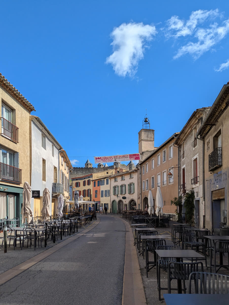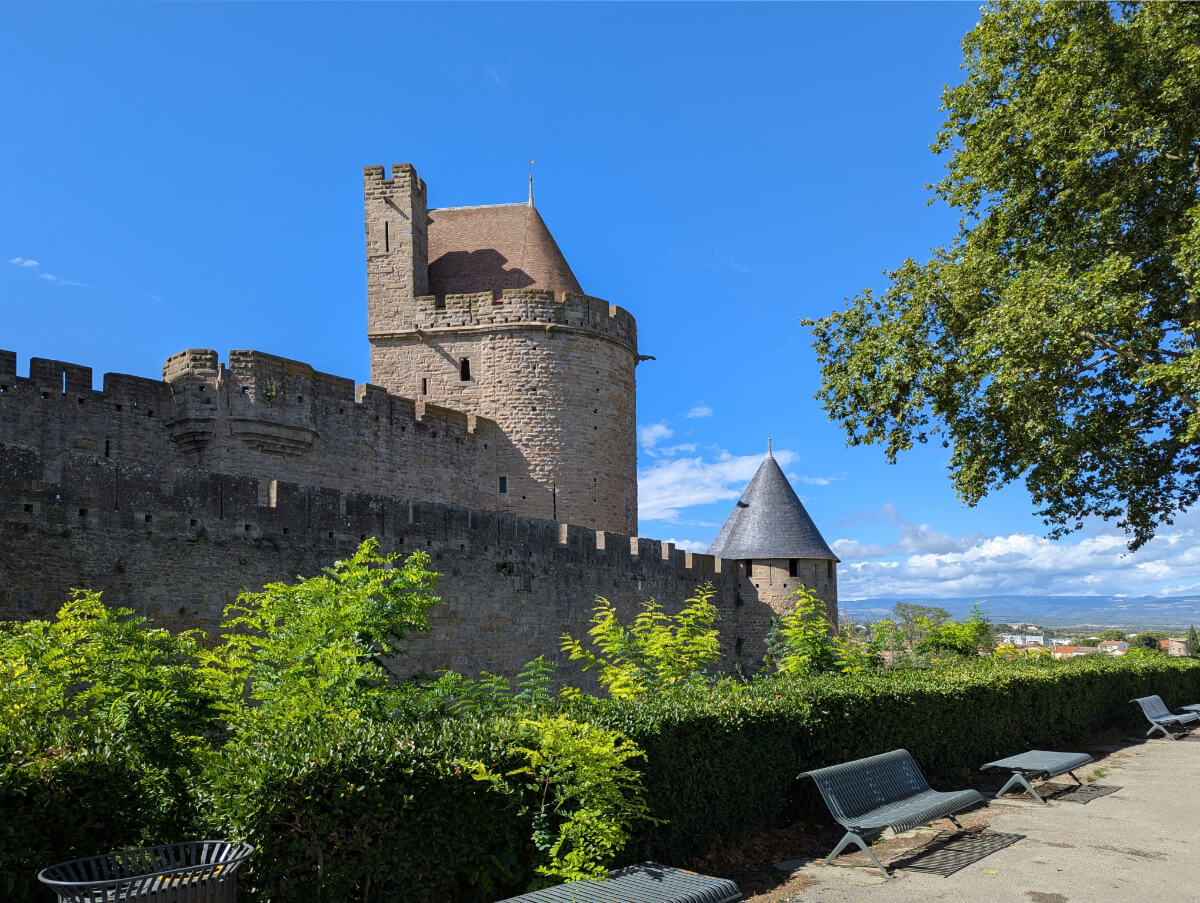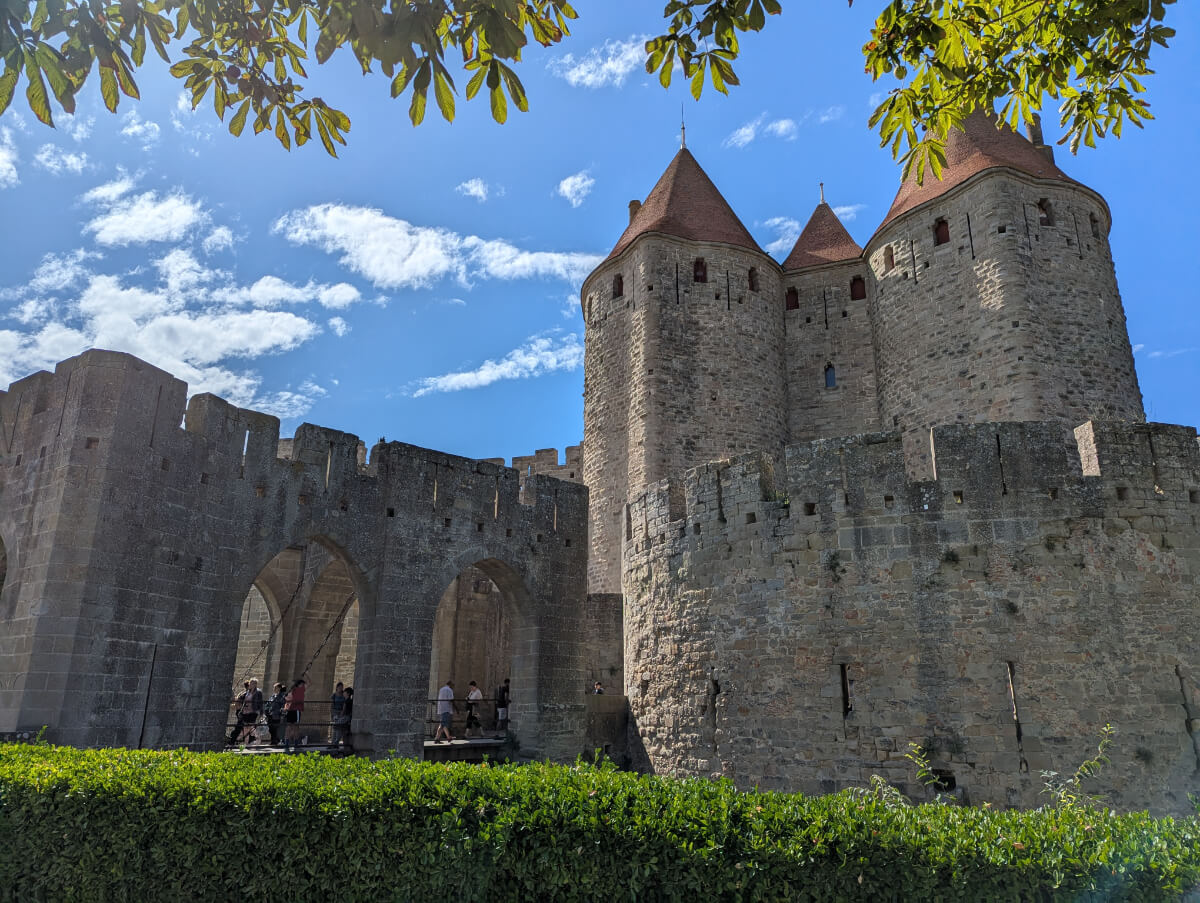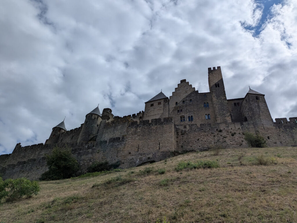 Es sind 1,5 Stunden Autobahnfahrt von unserer Unterkunft bis nach Carcassonne im Süden – das meiste davon ohne Mautgebühren. Wir starten heute zu dritt ohne Sarah, die sich einen gemütlichen Tag in der Domaine machen möchte …