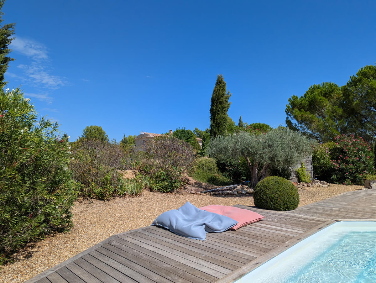 Da es für weitere Unternehmungen jetzt schon zu spät ist, die Olivenplantage bei Gignac heute nicht offen hat und uns keine weitere Idee kommt, beschließen wir, dass das heute ein weiterer Relax- und Pooltag auf unserer Domaine wird. Das Wetter ist toll und heute Abend wollen wir grillen …